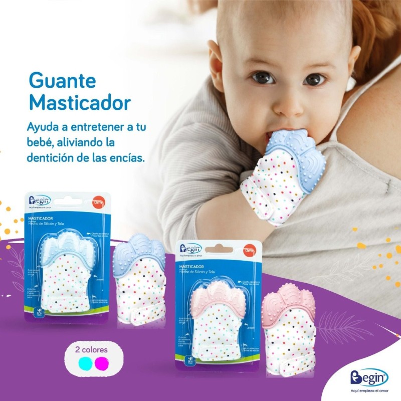 El guantecito masticador de Begin ayuda a entretener a tu bebé, aliviando la dentición de las encías. Se adapta a la boca de tu guagua, con velcro que se acomoda en su manito para evitar que se caiga al suelo.