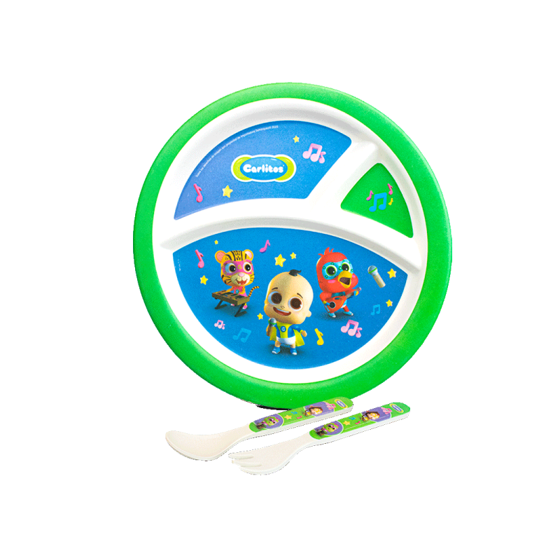 Hecho de fibras de bambú Amigable con el medio ambiente Libre de tóxicos Biodegradable Aprobado por la FDA para alimentos seguros Aptas para el lavavajilla Incluye: Plato llano, cuchara y tenedor