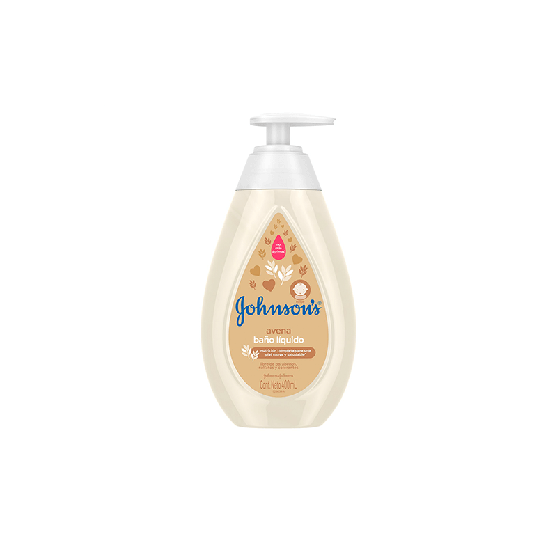 JOHNSON'S® baby baño líquido de avena tiene una fórmula cremosa dermatológicamente comprobada, con avena natural que limpia delicadamente la piel. Además de su exclusiva fórmula No Más Lágrimas® que no irrita los ojos