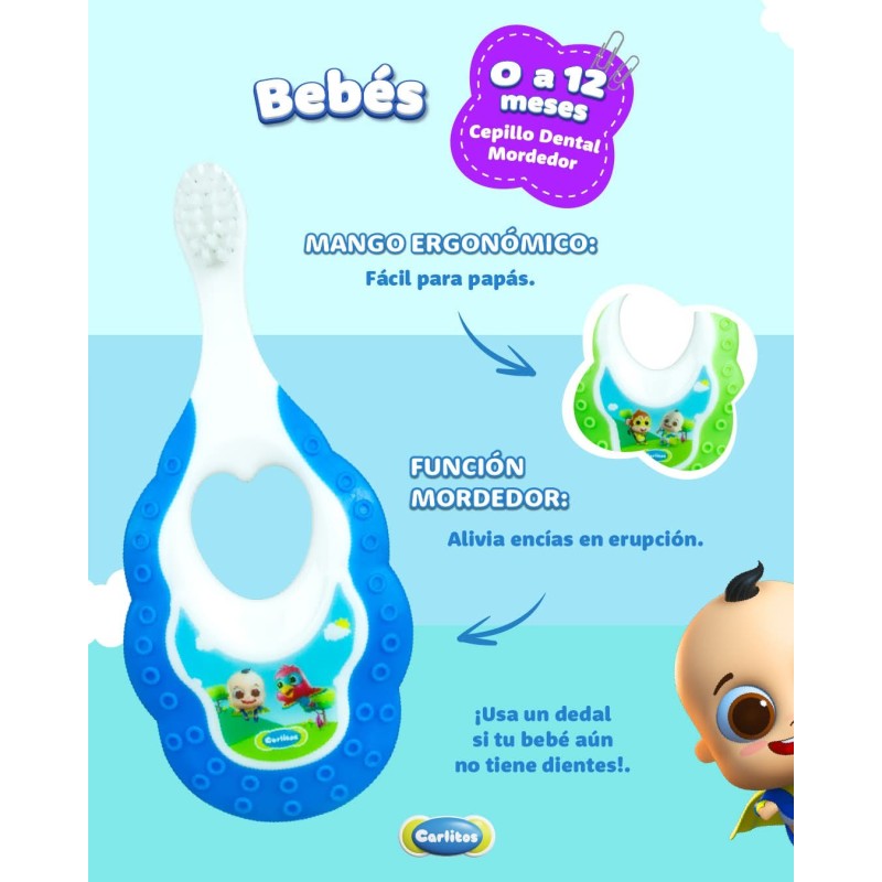 El Cepillo de Dientes con Mordedor CARLITOS es ideal para bebés de 0 a 12 meses