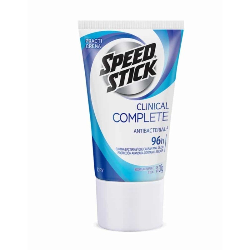 Speed Stick Clinical tampoco dejará manchas blancas en tu piel durante su uso. Speed Stick tiene una práctica presentación en crema de 30 g, para que lo lleves contigo dentro de tu mochila y puedas utilizarlo cuando lo necesites