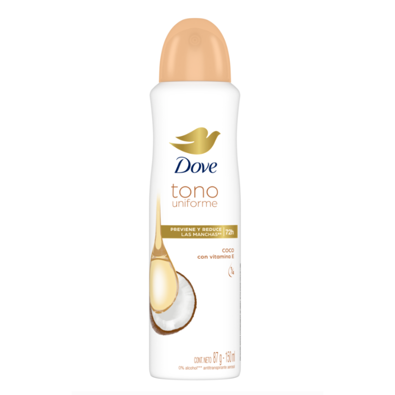 Nuestro Antitranspirante Dove Tono Uniforme Coco con un embriagante aroma con notas frutales. Ideal para empezar el día con toda la frescura para sentirte protegida, revitalizada y con toda la protección que necesitas.