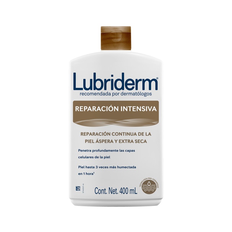 Lubriderm® Reparación Intensiva con Tecnología Pro-Ceramidas , repara intensamente los daños de la piel*, como resequedad, picazón, tensión, enrojecimiento por resequedad, entre otros, humectando hasta 3 veces más la barrera de la piel en una hora**, logrando una hidratación intensa y duradera hasta por 48 horas.