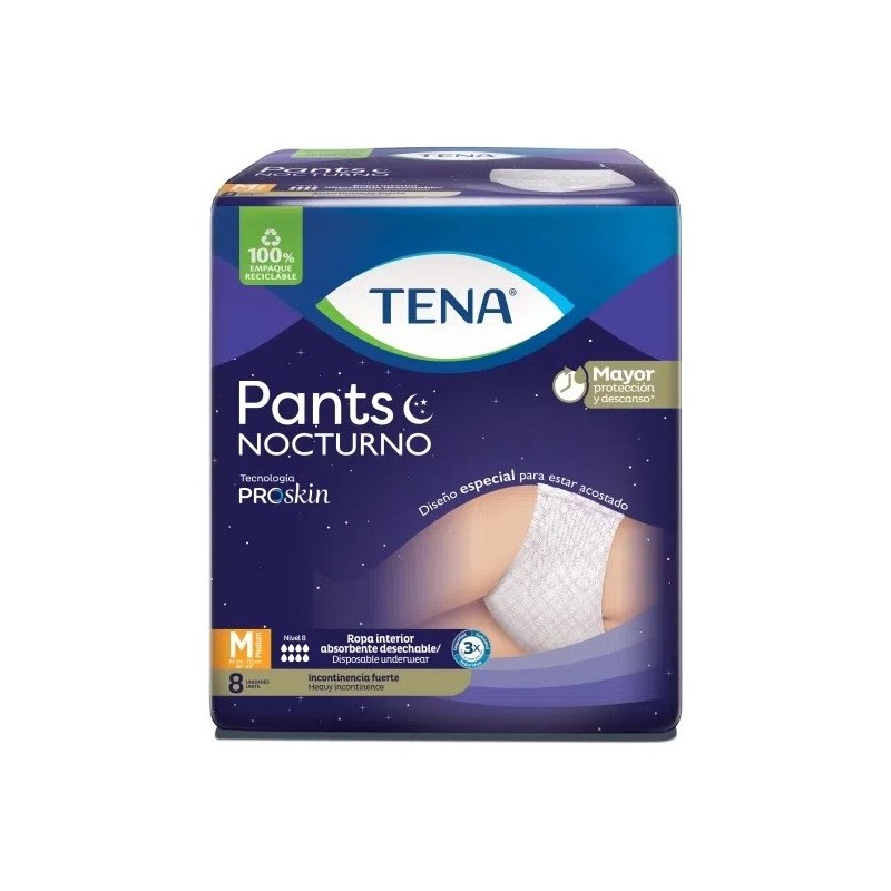 Disfruta de un descanso tranquilo gracias a su diseño especial que te protege mientras duermes. Ropa interior absorbente para hombres y mujeres activos con incontinencia fuerte, especial para la noche. Similar a un pañal desechable que se ve, se siente y se usa como ropa interior. Ahora con NUEVOS CANALES que absorben 2 veces más rápido* manteniendo la piel libre de humedad. Con zona de ultrabsorbencia de nueva generación para una piel seca por más tiempo y extracto de algodón que proporciona suavidad a la piel, evitando irritaciones. Con Tecnología ProSkin: componentes que cuidan y protegen la piel de los adultos.
