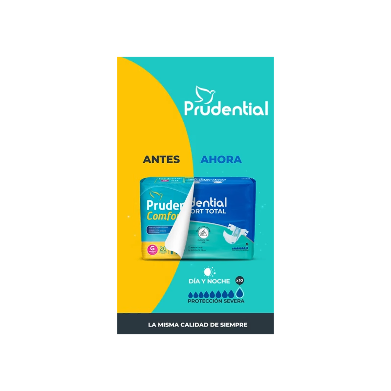El respaldo y la seguridad lo encuentras en Prudential Comfort Total, el pañal ideal para manejar pérdidas en fuertes cantidades, presentes en personas con capacidad de movimiento poca o nula.