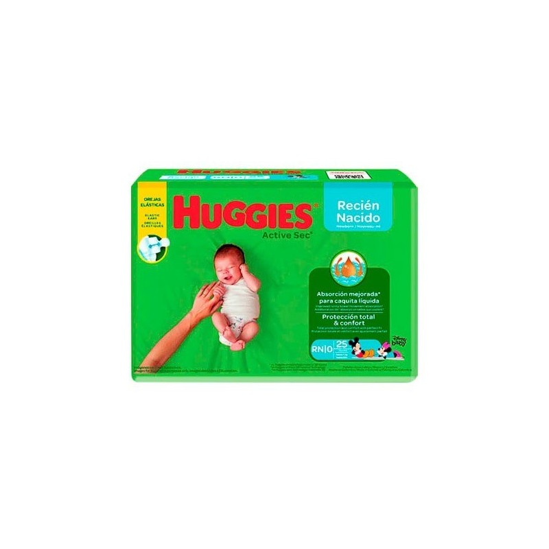 Pañales Huggies Active Sec Talla RN brinda 12 horas de protección