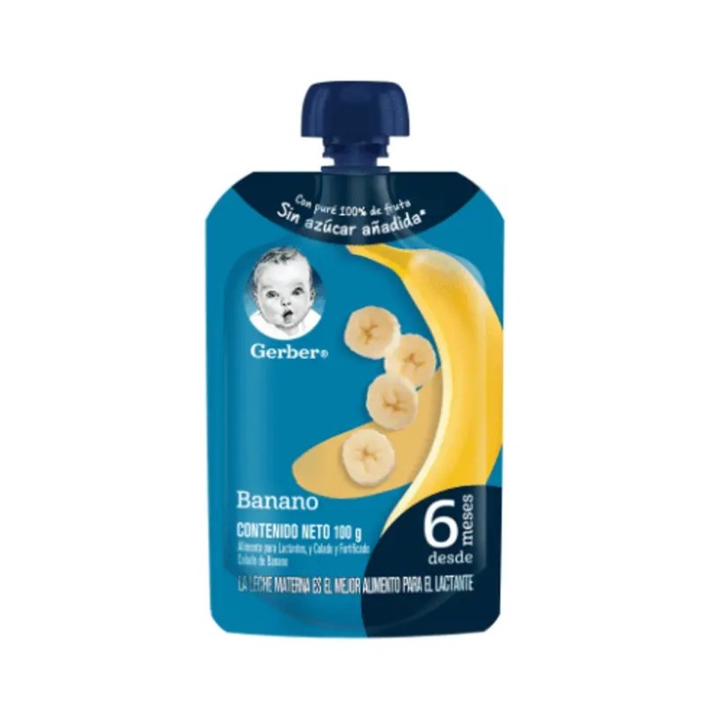 El Colado GERBER® de Banano está con hecho con puré 100% de fruta, sin azúcar añadida* (contiene azúcares naturales de la fruta), preservantes, colorantes ni saborizantes artificiales.