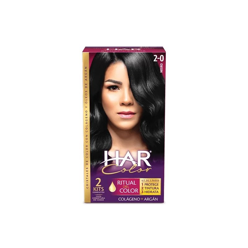 Kit de coloración en crema permanente Tono 2-0 Negro. ¡Es ideal para mujeres de piel bronceada!